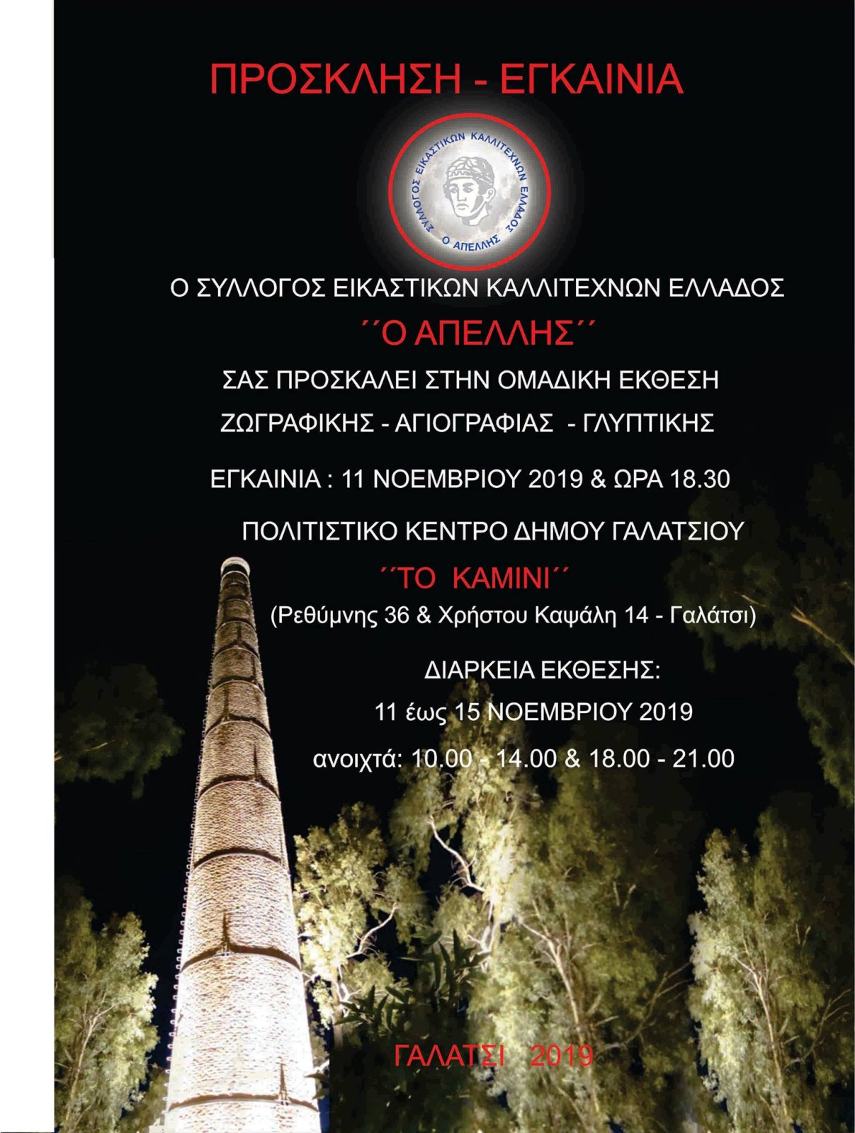 Άλλη μια ομαδική έκθεση του ΄΄ΑΠΕΛΛΗ΄΄ ξεκίνησε 11/11/2019 με μεγάλη επιτυχία στον όμορφο εκθεσιακό χώρο στο ΄΄ΚΑΜΙΝΙ΄΄ Γαλατσίου.